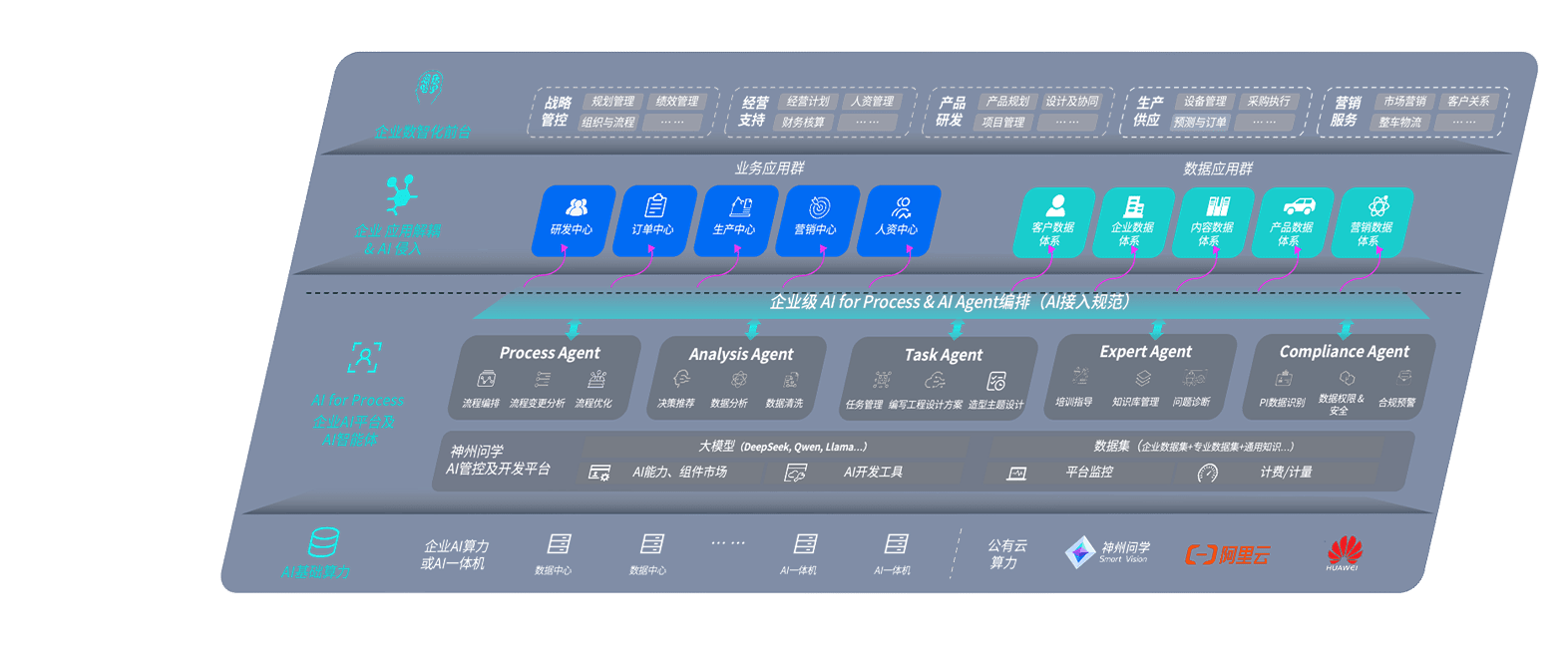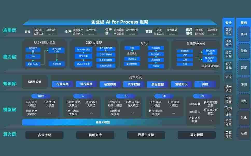 端到端的一站式AI工作空间深度融合了从企业战略规划到日常经营的全流程业务板块,,,定向解决车企内部领域多、、、部门多、、、链条长、、、场景碎片化等难题,,,支持车企快速构建以AI为核心的生产力写作体系,,,实现任务执行与AI能力的无缝集成与交互