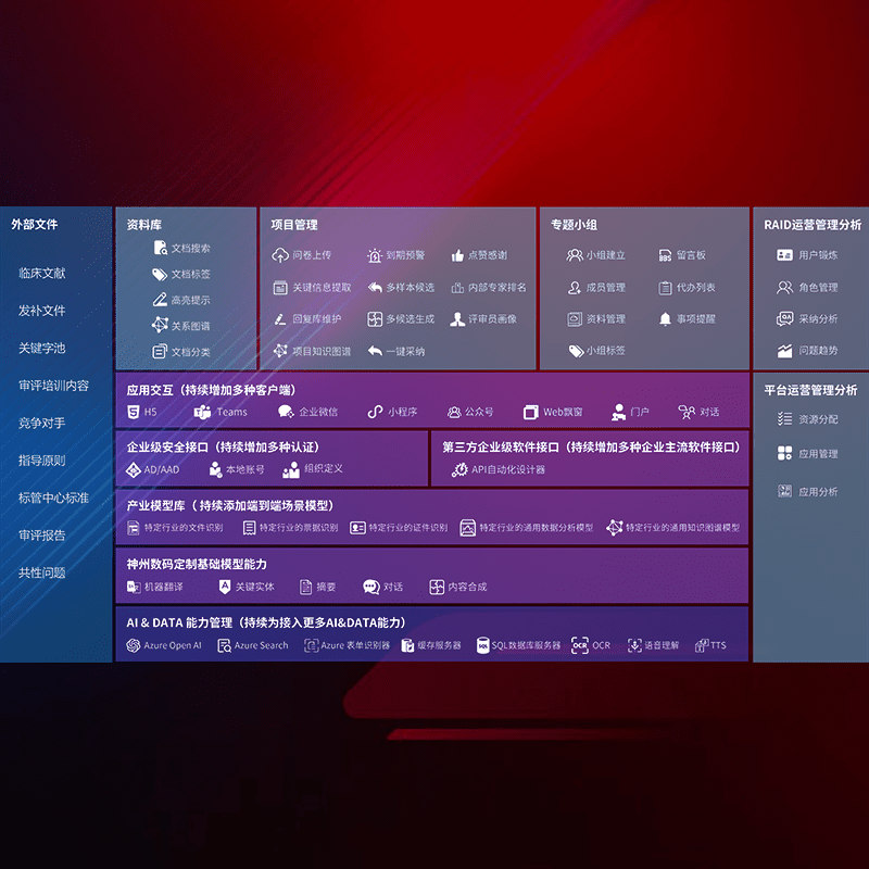 医疗器械产品上市前,,,,要熟悉严格与繁复评审标准,,,整理分析监管机构指导文件中的海量信息。。。。企业急需一个智能化解决方案,,,提升知识管理效率,,,,提高评审通过率,,,,以提升其市场竞争力。。